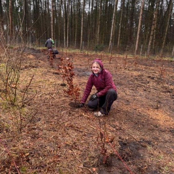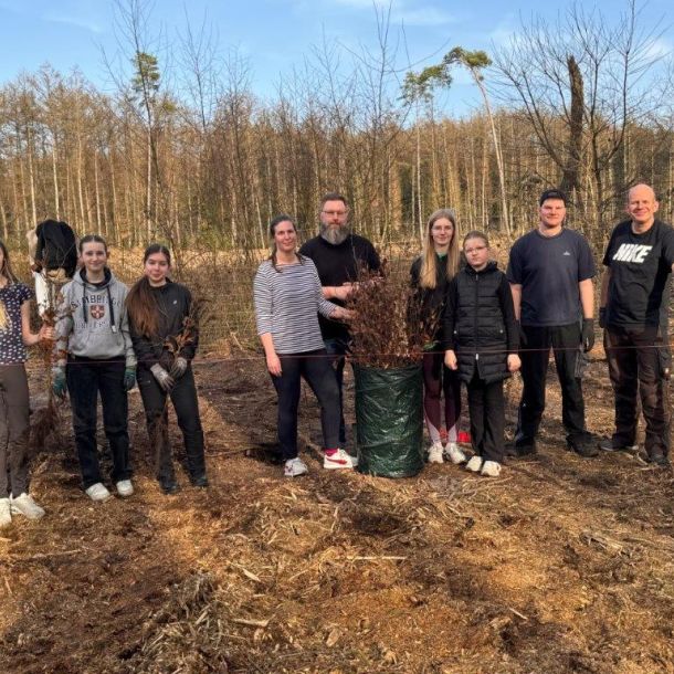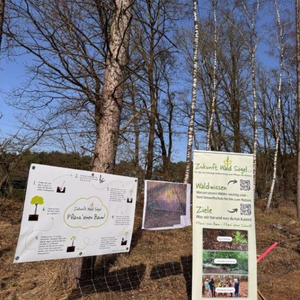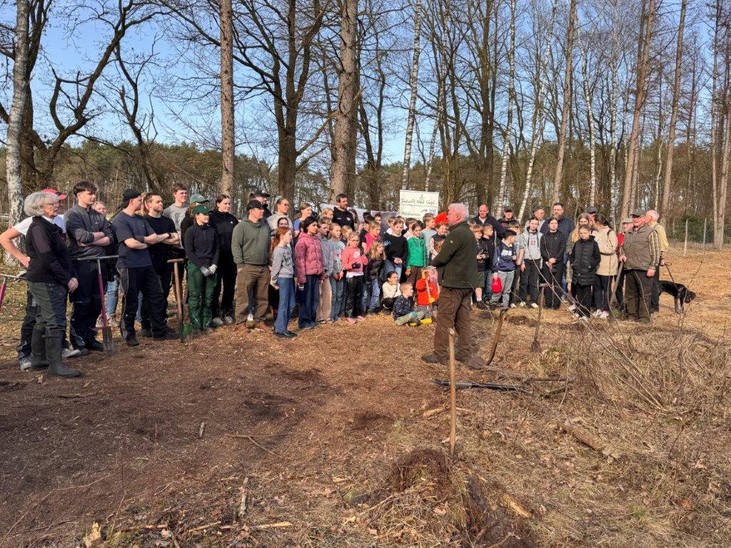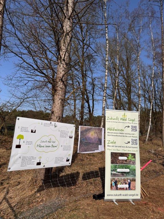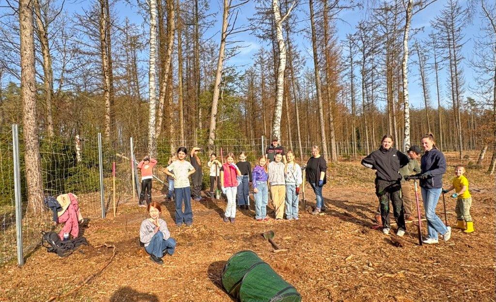 Der gemeinnützige Verein, Zukunft Wald Sögel e. V. setzt sich aktiv für die Aufforstung und Pflege der regionalen Waldflächen ein. Im Rahmen der Aktion wurde mit Förster Nils Sievers eine neue Fläche vorbereitet. Er wählte Baumarten wie Küstentanne, Douglasie, Buche, Roteiche und Esskastanie, um einen widerstandsfähigen Mischwald für die Zukunft zu schaffen. Wildtiere, wie Hasen und Rehe nagen gerne an jungen Bäumen. Um dies zu vermeiden setzten wir schon im Vorfeld der Pflanzaktion mit den Gruppenleitern einen Wildschutzzaun.