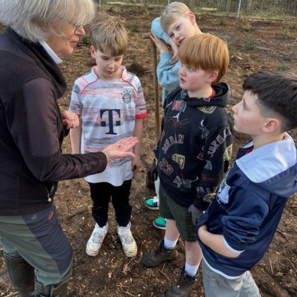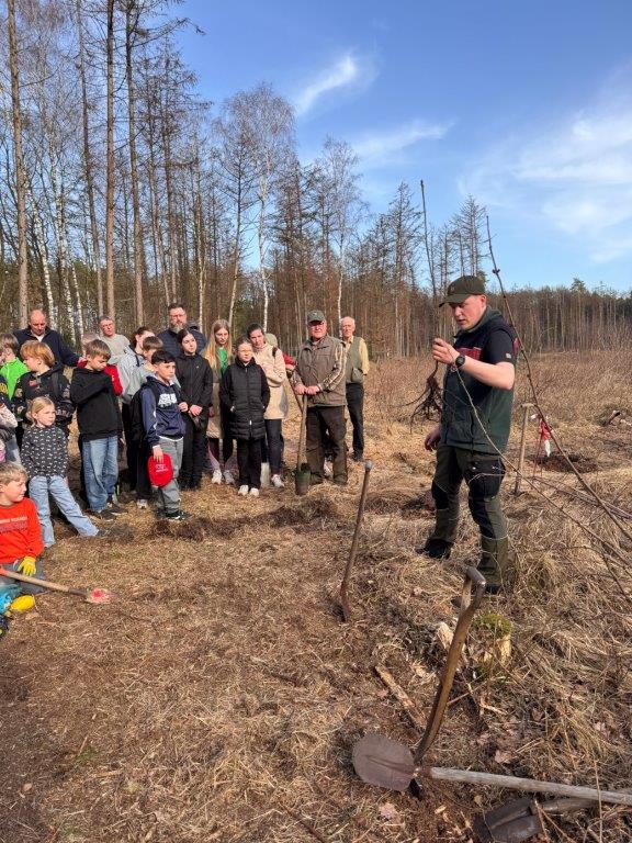 58 Kinder und Jugendliche, wie auch ihre Betreuer wurden vom Vorsitzenden Wilhelm Schepers begrüßt und vom Förster Nils Sievers mit einer Pflanzanleitung vertraut.