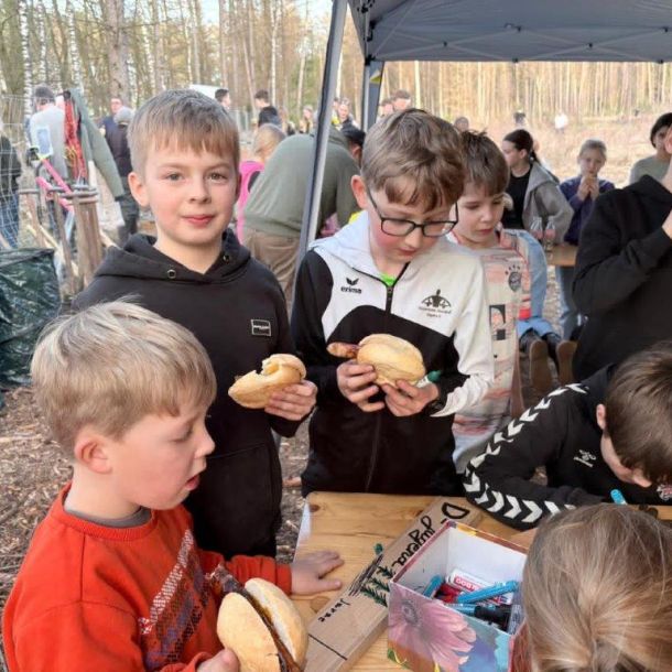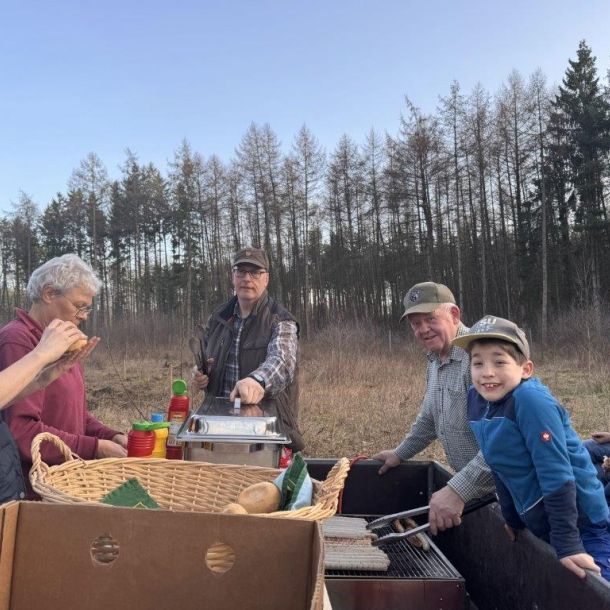 Neben der Arbeit kam auch die Verpflegung nicht zu kurz. Otto Stürmeyer und Clemens Hinrichs unterstützten die Aktion mit Getränken, Grillwürstchen und Brötchen für die fleißigen Helfer.